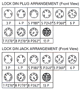to cable, lock button type 3-8 & 13 pins. Straight male din plug
